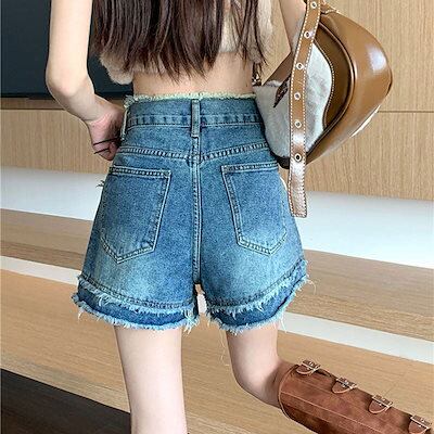 脚見せショートパンツ かっこいいスラックスパンツ デニムパンツ ワイドパンツ ショーツ ファットエッジ ファットミリ 大きいサイズ デニム ショートパンツ レディース ニッチ レトロ ゆったり ハ