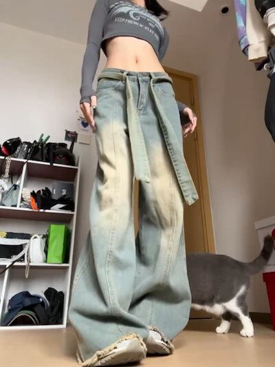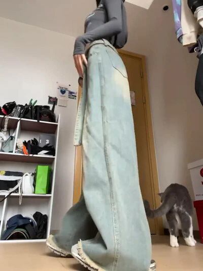 大きいサイズ デニムジーンズ アメリカ レトロ ワイドパンツ ジーパン レディー ストレートパンツ ゆったり ロングパンツ