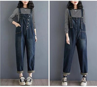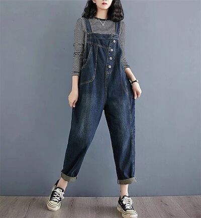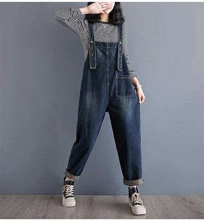 前後2Way デニムサロペット レディース コーデ 秋 サロペット デニム 大きいサイズ ワイド パンツ オーバーオール ロング 体型カバー ゆったり 楽ちん 大人 デニムワイドパンツ 春 夏 秋 無