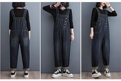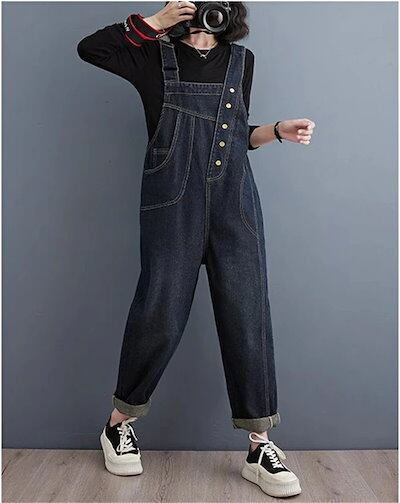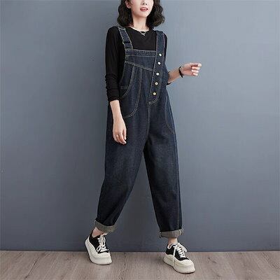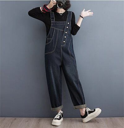 オールインワン デニムサロペット レディース コーデ 秋 サロペット デニム 大きいサイズ サルエルパンツ アシンメトリー 体型カバー ゆったり 楽ちん 大人 デニムワイドパンツ 春 夏 秋 無地