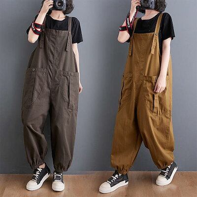 サロペット オールインワン レディース パンツ ワイドパンツ ガウチョパンツ ガウチョ オーバーオール カジュアル 大きいサイズ 体型カバー サルエルパンツ ボトムス ゆったり 無地 30代 40代