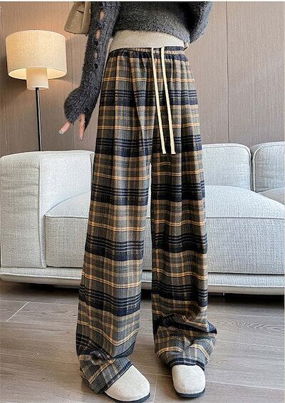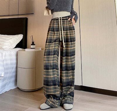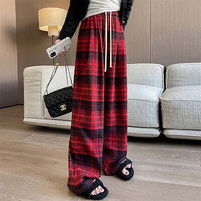 チェックパンツ レディース 秋冬 ワイドパンツ ロングパンツ 春 秋 冬 ガウチョパンツ 裏起毛 2type ボトムス パンツ チェック柄 ワイド 大きいサイズ ストレート ウエストゴム ポケット ゆ
