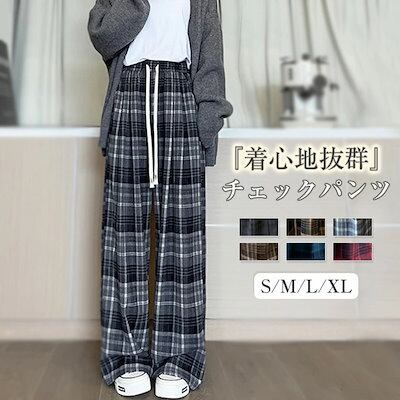 パンツ チェック パンツ レディース 秋冬 ワイドパンツ ガウチョパンツ チェック柄 ワイド ガウチョ 大きいサイズ ロングパンツ ストレートパンツ ボトムス ウエストゴム ポケット付き きれいめ カ