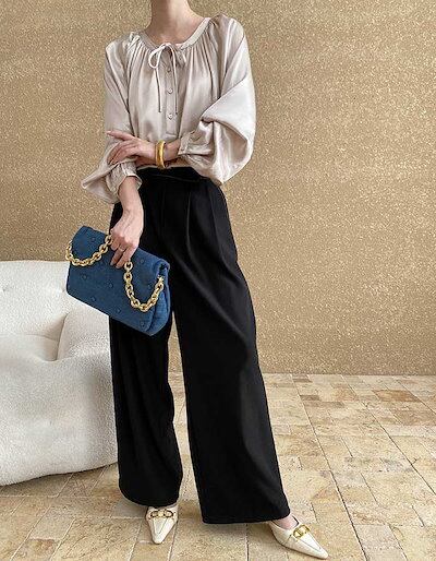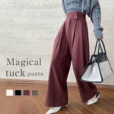 タックパンツ パンツ ワイド レディース タック ワイドパンツ ロング ロングパンツ ボトムス ボトム ストレート ズボン ハイウエスト タック マジックテープ 美脚 大きいサイズ 体型カバー 30代