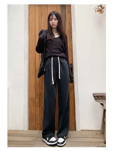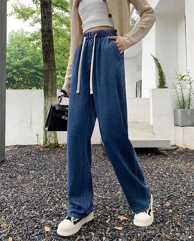 デニム パンツ レディース ワイドパンツ ズボン ロングパンツ デニムパンツ ボトムス ジーンズ ガウチョ きれいめ 体型カバー ウエストゴム お洒落 大きいサイズ 着痩せ 美脚 通勤 通学 ゆったり