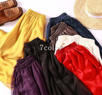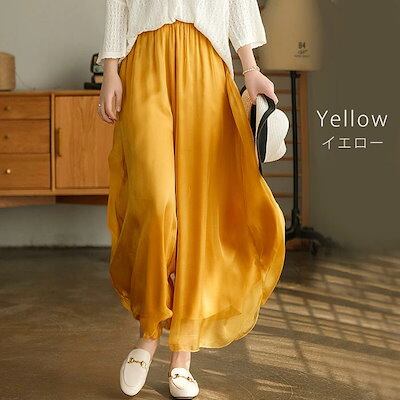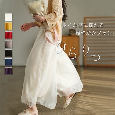 ワイドパンツ ガウチョパンツ シフォンパンツ レディース 夏 春 ハイウエスト 大きいサイズ ロング丈 ワイド パンツ スカンツ スカーチョ シフォン ボトムス 無地 ウエストゴム ふんわり 体型カバ
