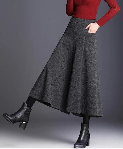 ガウチョパンツ ワイドパンツ レディース 秋冬 きれいめ 9分丈 フレア ミモレ丈 ハイウエスト ガウチョ 大きいサイズ ボトムズ 大人 オフィス 美脚 通勤 黒 無地 ゆったり おしゃれ オフィスカ