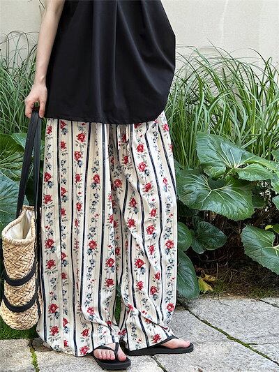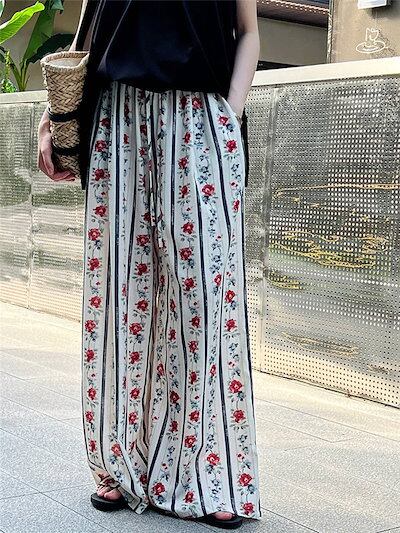 花柄パンツ レディース ワイド ワイドパンツ 夏 涼しい ひんやり ガウチョパンツ イージーパンツ 花柄 総柄 大きいサイズ ゆったり ゆる ボトムス 春夏 ロングパンツ マキシパンツ マキシ丈 体型