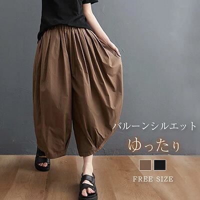 ワイドパンツ レディース バルーンパンツ コクーンパンツ チノパン ガウチョパンツ タックパンツ 春 大きいサイズ ゆったり ボトムス タック キュロット 体型カバー ウエストゴム 無地 リラックス