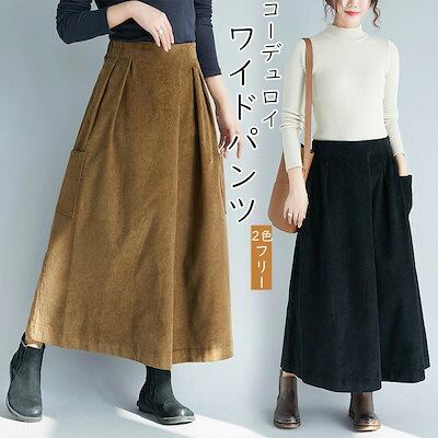 パンツ レディース コーデュロイパンツ ワイドパンツ ワイドルーズ ハイウエスト パンツ ゆったり 体型カバー ボトムス 大きいサイズ マキシ丈 ポッケトつけ ファスナー付き 秋冬物 無地 大人 かっ