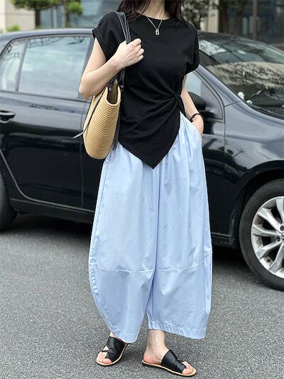 リヨセル ワイドパンツ レディース コットン 綿 きれいめ ガウチョパンツ 春 秋 レディース カジュアル ギャザー パンツ 大きいサイズ ゆったり ボトムス 体型カバー ウエストゴム 無地 リラック