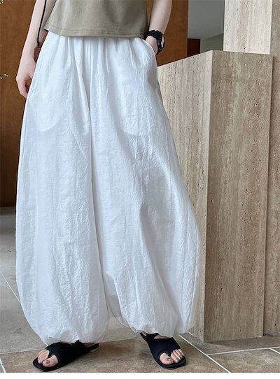 ワイドパンツ レディース 綿麻風 きれいめ ガウチョパンツ 無地 春 秋 レディース カジュアル ギャザーパンツ 大きいサイズ ゆったり ボトムス 体型カバー ウエストゴム リラックス 着痩せ 美脚