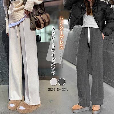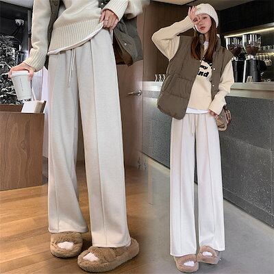 ワイドパンツ レディース ボトムス ズボン ロング ロングパンツ ロング丈 ツイードパンツ 大きいサイズ ゆったり 冬 普通丈 長め丈 ツイード ヘリンボーン ウエストゴム リボン付き 厚手 あったか