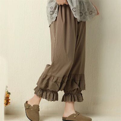 裾レース ペチパンツ レースパンツ インナー レディース 透け防止 重ね着 レイヤード ロング パンツ 春 夏 ロングパンツ ワイド 裾ゴム 刺繍 レース 大人 ボトムス ゆったり 大きいサイズ 体型