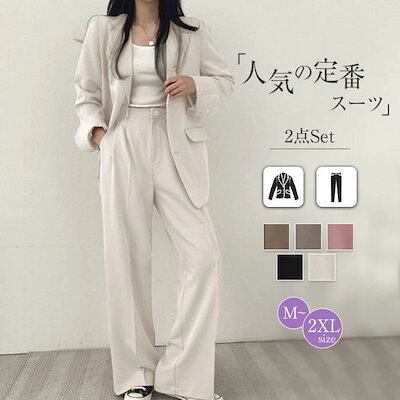 パンツスーツ レディース セットアップ スーツ 上下セット 洗える フォーマル ビジネススーツ 無地 大きいサイズ 卒園式 入学式 面接 ジャケット ワイドパンツ ロング 2点セット おしゃれ カジュ