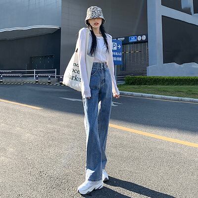 ワイドパンツ ハイウエストジーンズレディース2025春新作ストレートパンツルーズトレーリングワイドパンツ