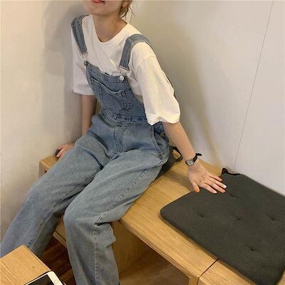 コーデ完成!サロペットライトブルーデニムバックパックパンツレディース2024春夏レトロルーズワイドパンツワークウェアカジュアル薄いドラッグパンツ