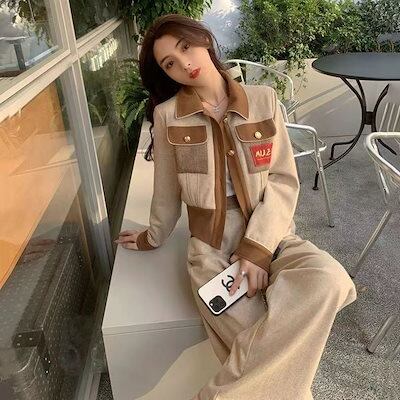 セットアップ 春 厚手 ラシャ二点セット カジュアル 百掛け ジャージ ワイドパンツ セット 韓国 レディース