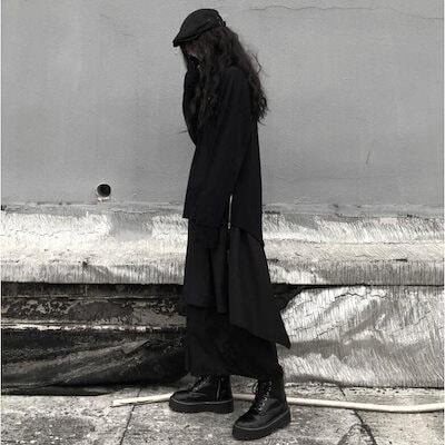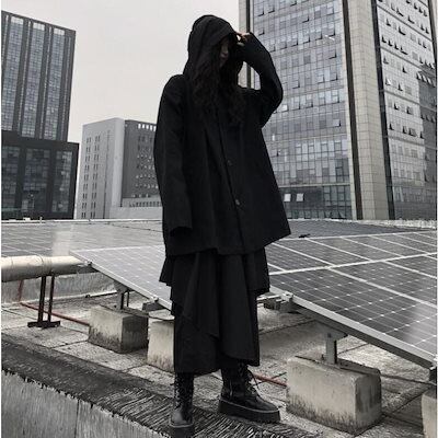 ワイドパンツ 春 夏 秋 スカート風 レディース ガウチョ パンツ ゆったり 暗黒系 二重 不規則 かっこいい