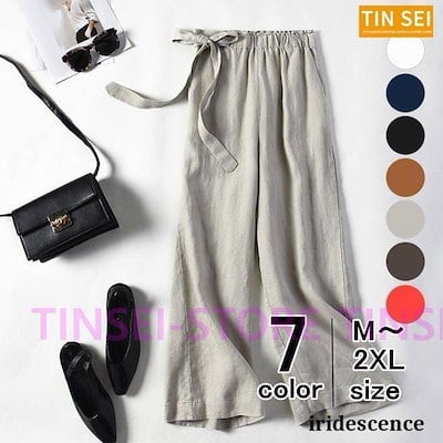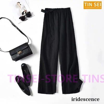 出荷が早いワイドパンツ レディース ガウチョパンツ リネン調 綿麻混 ロング ボトムス タックパンツ春 春夏 春服 夏