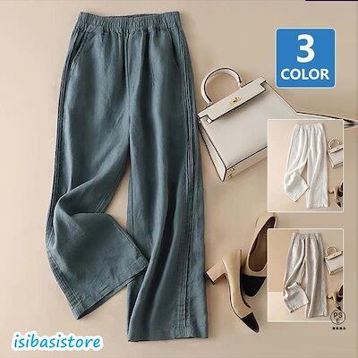 人気新作 ワイドパンツ レディース パンツ リネンパンツ 綿麻 ワイド 大きいサイズ 美脚 ゆったり きれいめ 春 夏 30代リラックスイージーパンツ