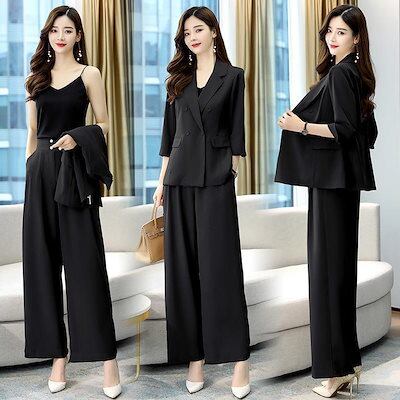 速達!卒業式 服 母 セットアップ レディース 春 パンツスーツ ワイドパンツ3点セット 入学式 ジャケットおしゃれ ママフォーマル オフィス 通勤 OL