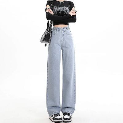 ワイドパンツ 2024春夏 新作 ライトブルー ジーンズ ストレート 着痩せ ワイドパンツ 百掛け