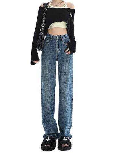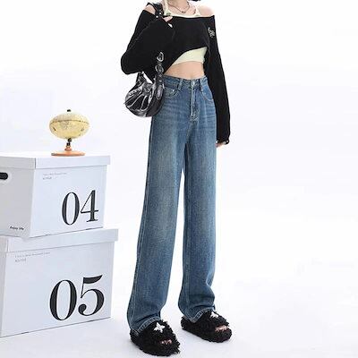 ワイドパンツ 2025春夏 新作 百掛け ジーンズ ワイドパンツ レトロ 着痩せ ワイドパンツ