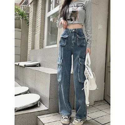 ワイドパンツ 2024春夏 新作 個性 ポケット ジーンズ ワイドパンツ ワイドパンツ