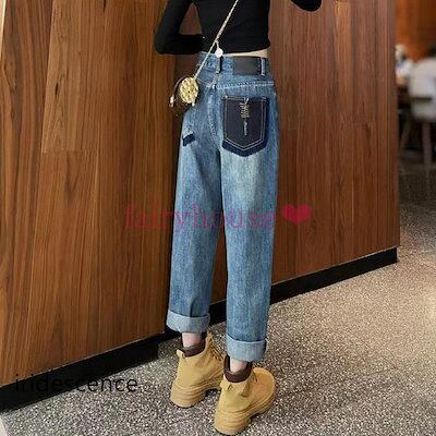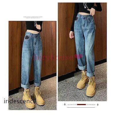 (お正月は閉まりません)ジーンズ レディース デニムパンツ ストレート ジーパン ワイドパンツ ハイウエスト デニムズボン ロング丈 ゆったり 着痩せ 春夏秋 オシャレ 30代40代50代
