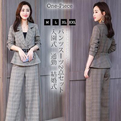 セットアップ レディース ワイドパンツ スーツジャケット チェック柄 お洒落 上品 通勤 入学式 卒業式 セレモニー 母 OL 春