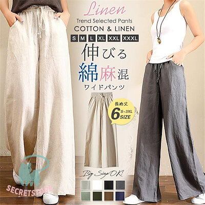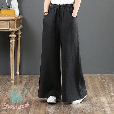 新品(タイムセール)ワイドパンツ レディース パンツ ウエストゴム チノパン ズボン ロング ボ ゆったり イージーパンツ ガウチョ カジュアル 春夏 体型カバー