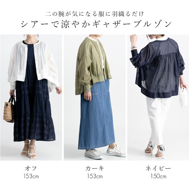 シアーギャザーブルゾン 羽織り シアー キレイめ 透け ノーカラー ブルゾン カーデ アウター