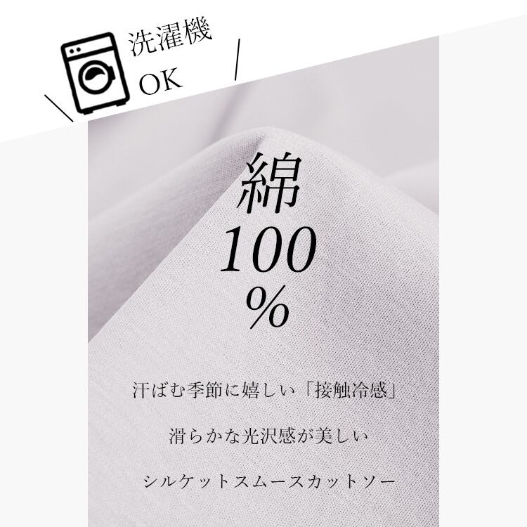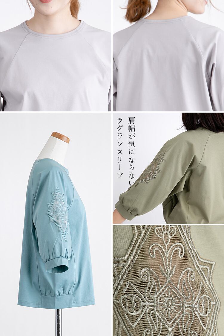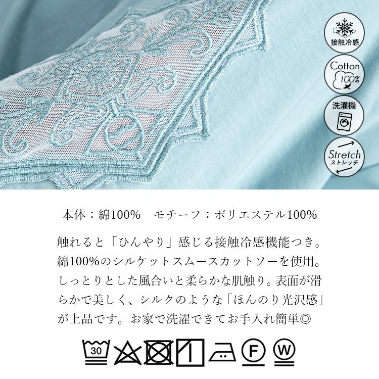 【接触冷感・綿100%】洗濯機で洗えるシルケットカットソー・フレームレース袖トップス レース袖 ひんやり