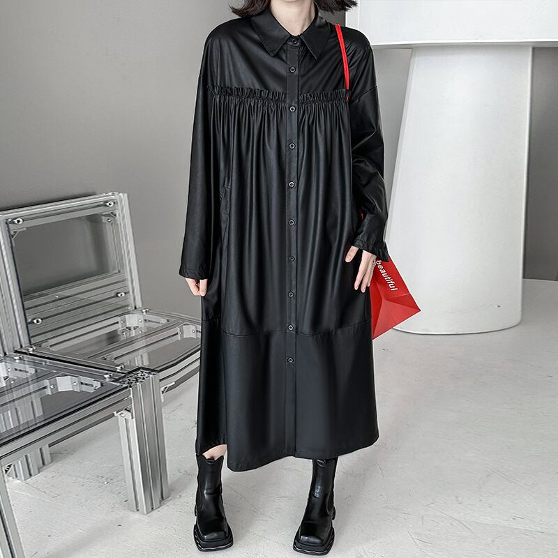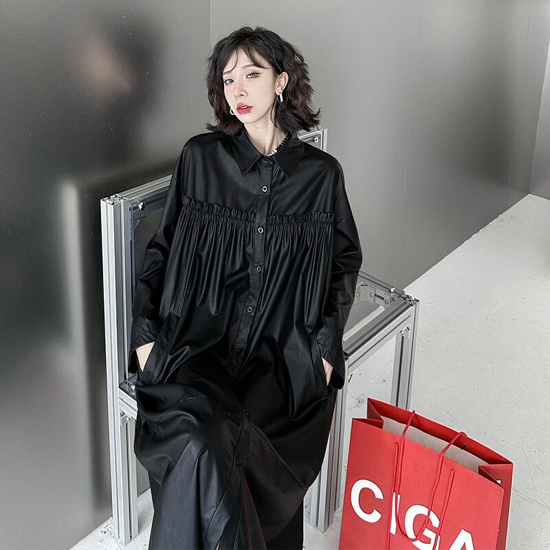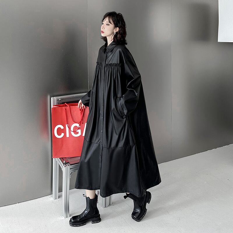 初回送料無料日系新春と秋のゆったりワンピースPUパーカーロングシャツワンピース人気商品