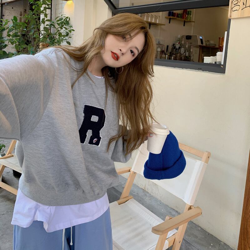 2022新作 プルオーバー パーカー ラウンドネック レディーストップス 英字ロゴ入り