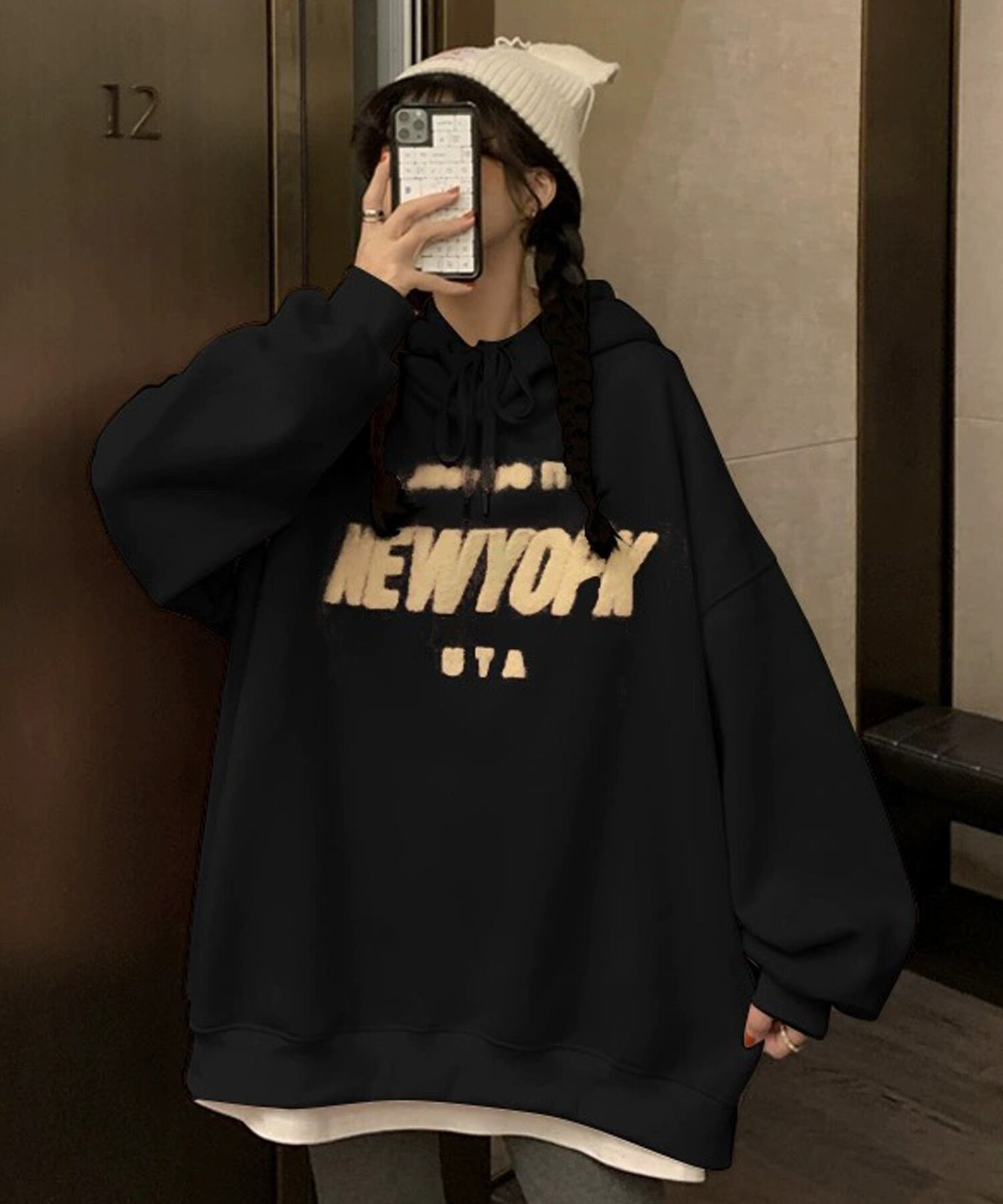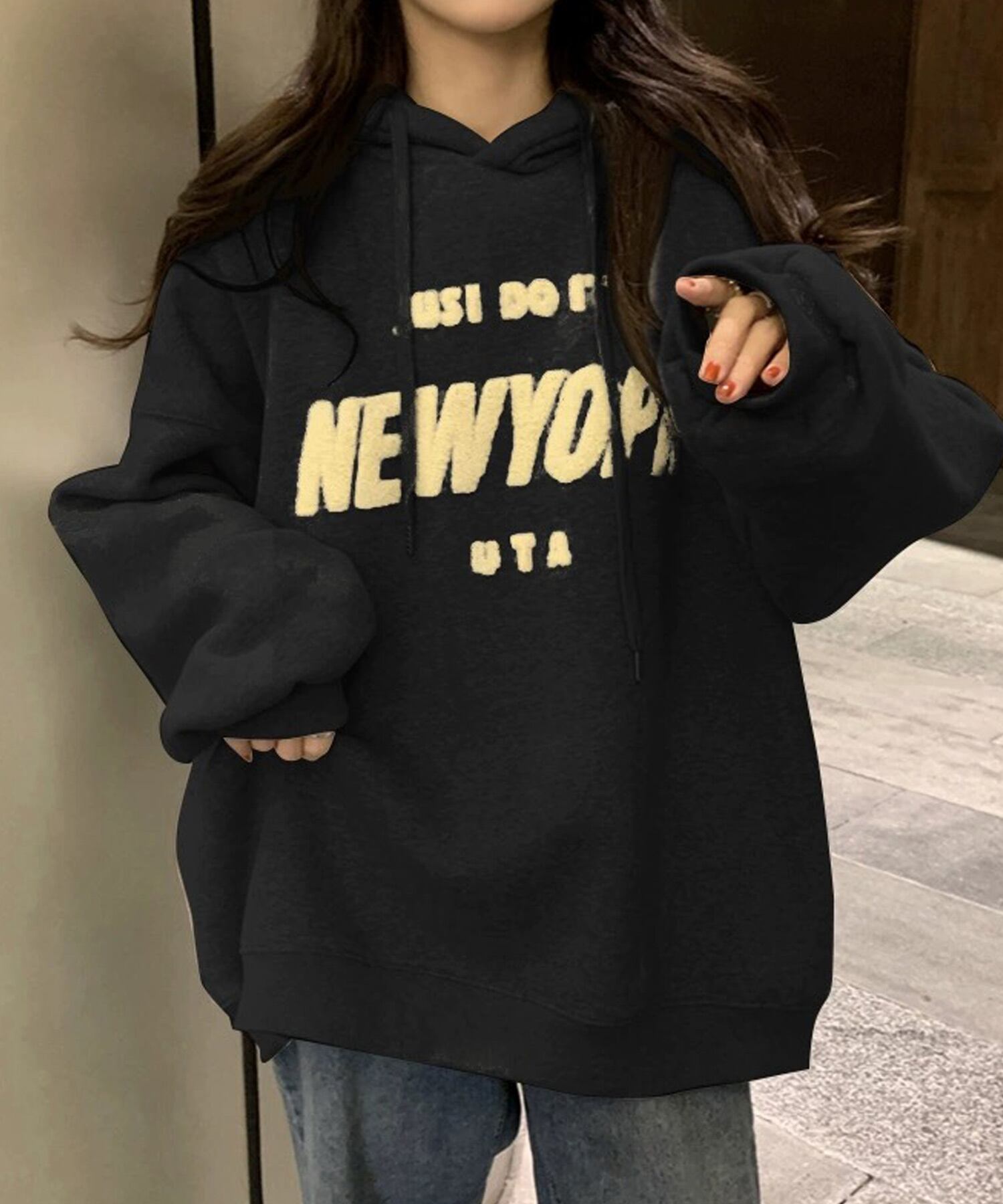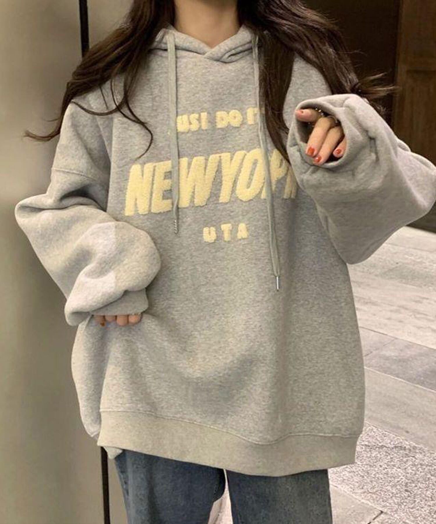ビッグシルエット ロゴ フーディーパーカー 【即納】 レディース 韓国 プチプラ おしゃれ