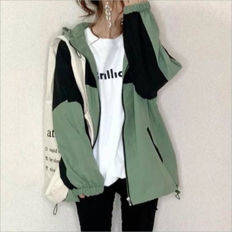 レディースアウターバイカラージップアップパーカー長袖無地フード付き春夏秋カジュアルキュート大人可愛い