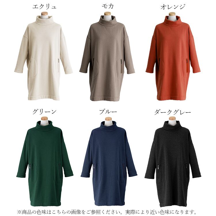 もこもこ暖か裏起毛!ファスナーポケット付ゆったりドロップ袖チュニック 裏シャギー 裏起毛 レディース