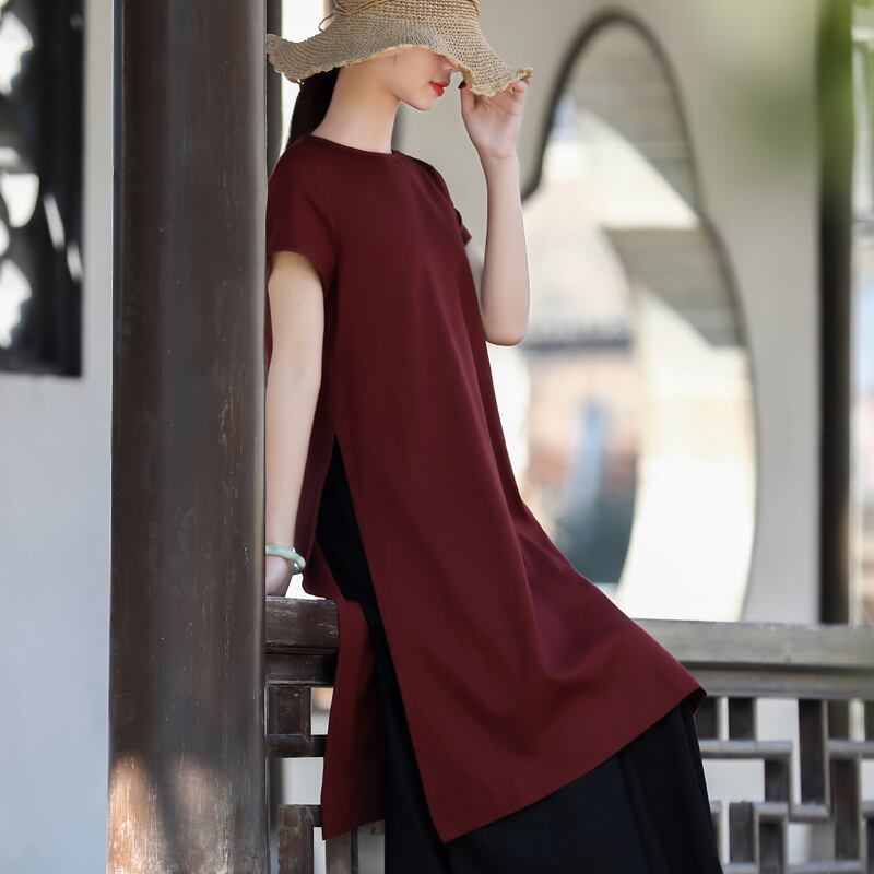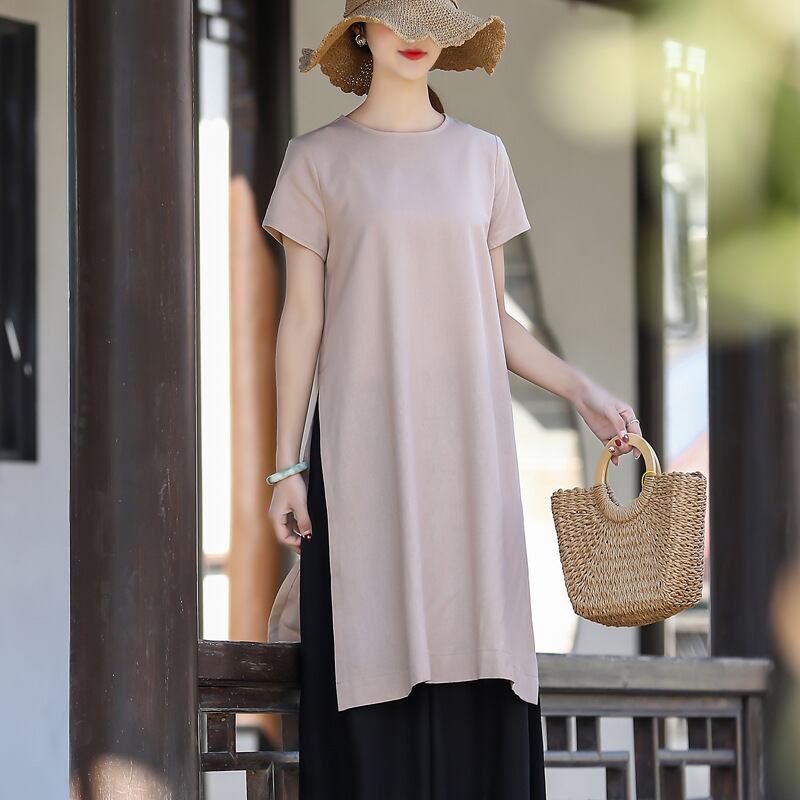 初回送料無料 綿麻Tシャツ ロング上着 半袖 レーディスファション商品 カジュアルトップス 人気商品