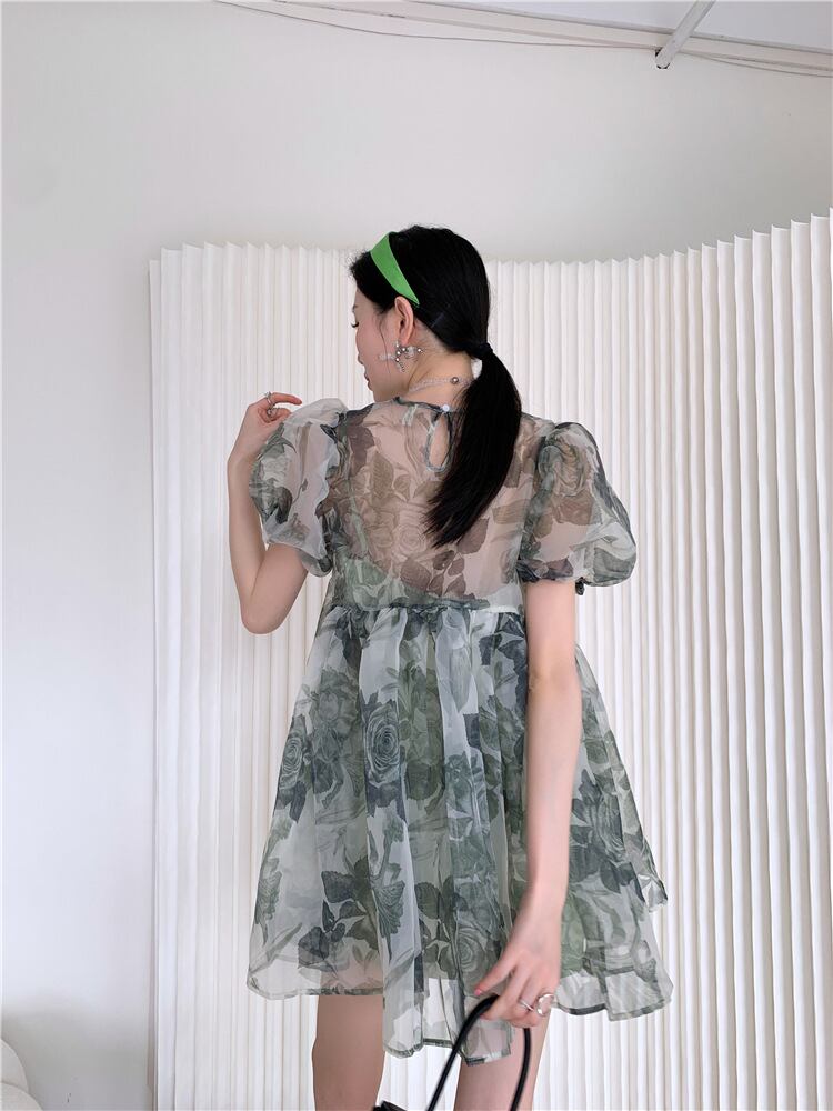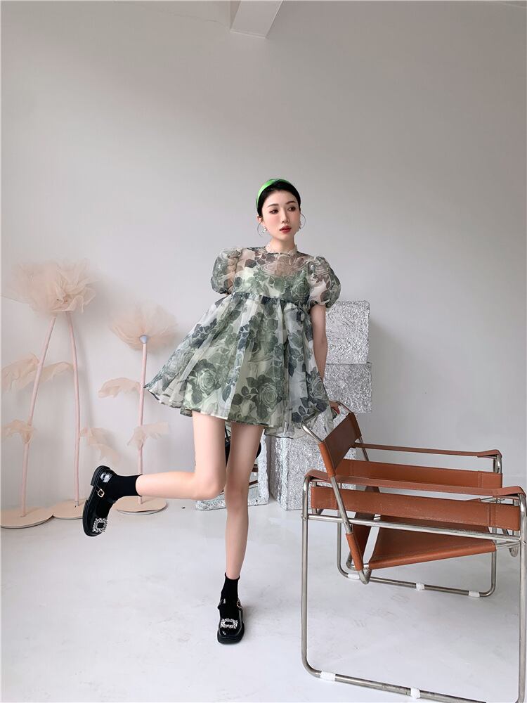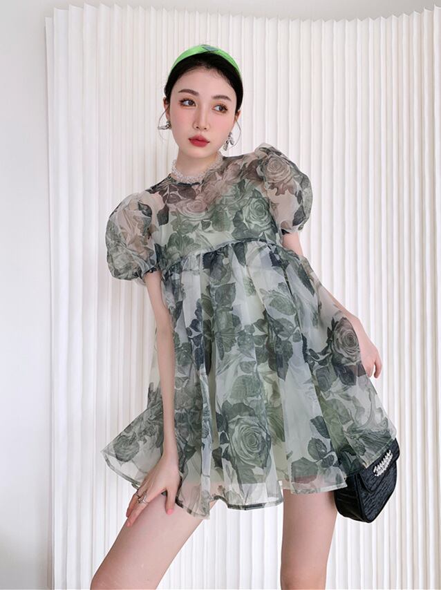 初回送料無料 バブルスリーブワンピース 半袖ポンポンワンピース人気 ファション洋服 人気商品