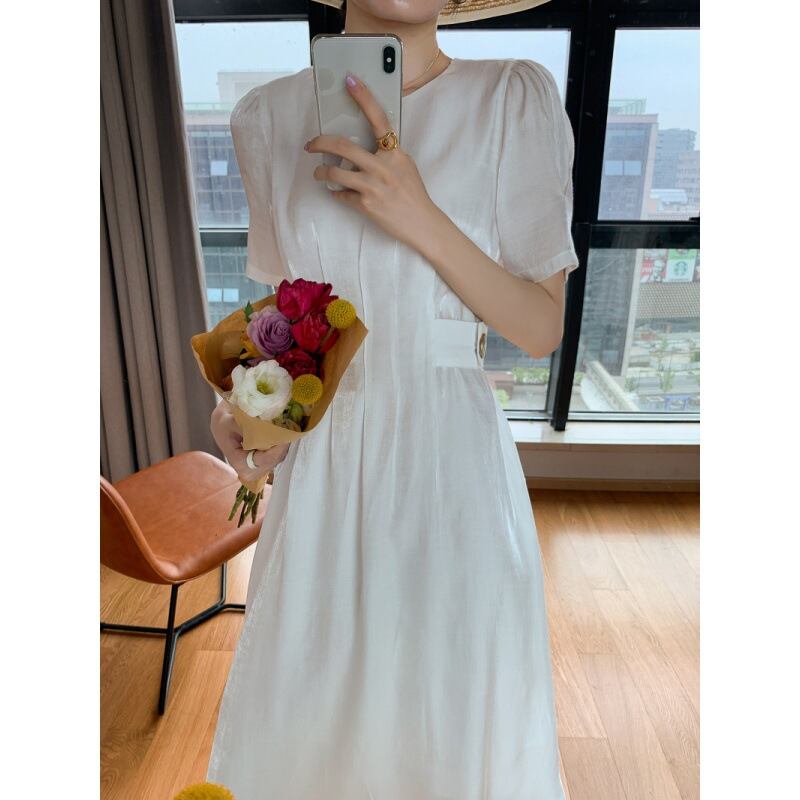 初回送料無料新作レディース半袖気質フレンチハイウエストギルトドレスワンピース