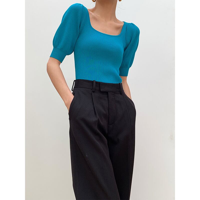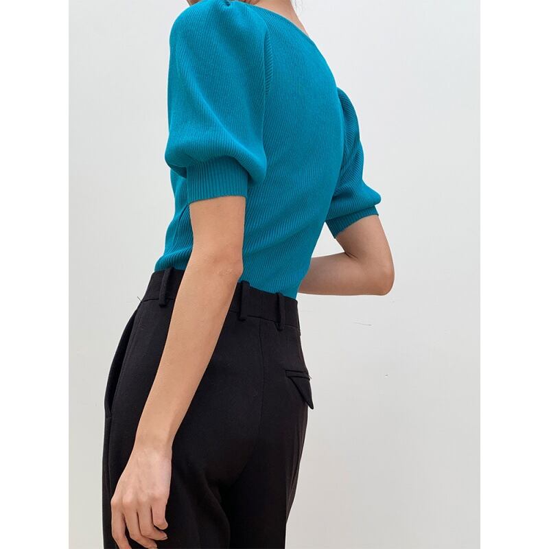 初回送料無料半袖スリムパフスリーブニットセーターフレンチトップトップス人気商品