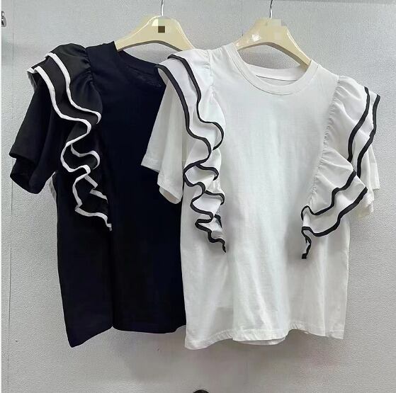 全2色 半袖Tシャツ フリル 切り替え 体型カバー 着痩せ カジュアル