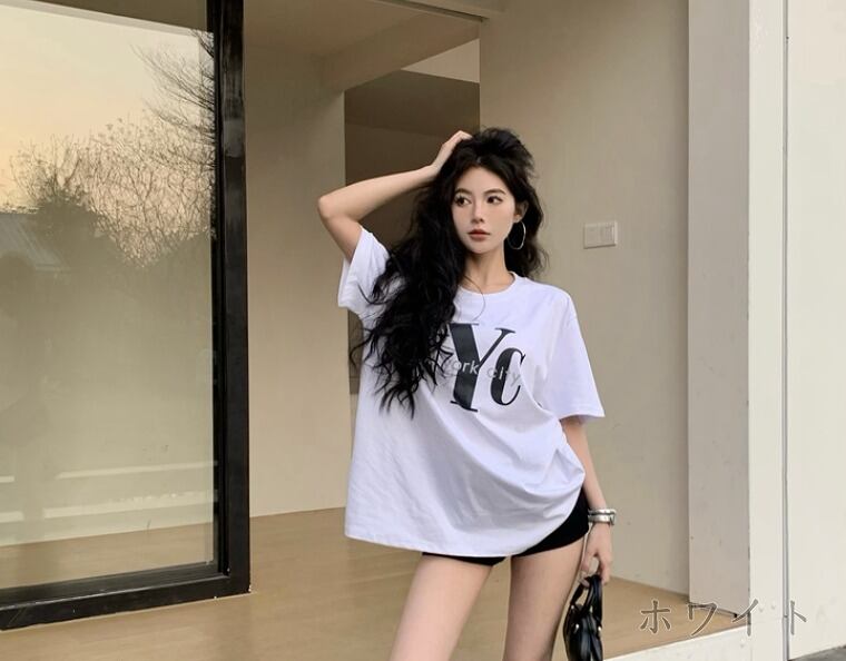 全2色 半袖Tシャツ プリント 切り替え 体型カバー 着痩せ カジュアル