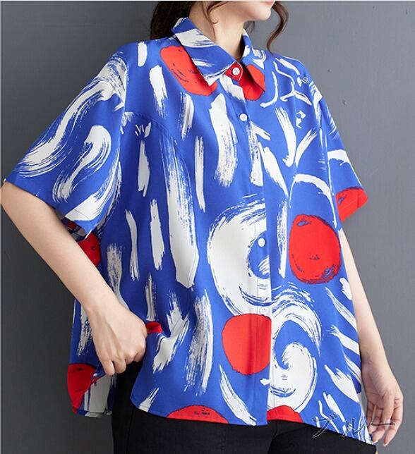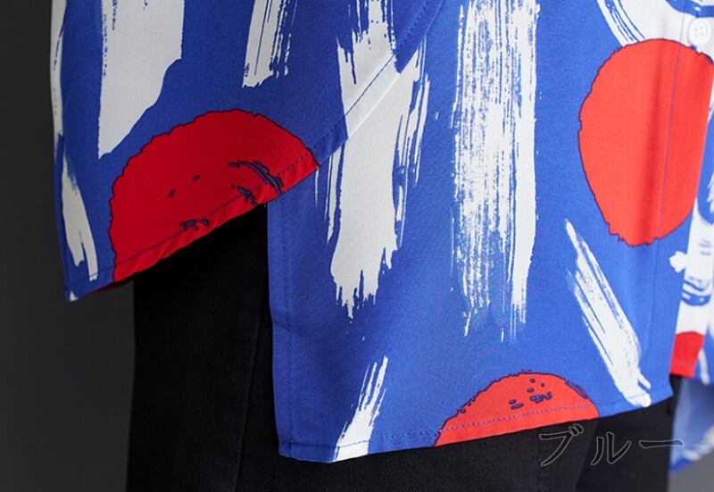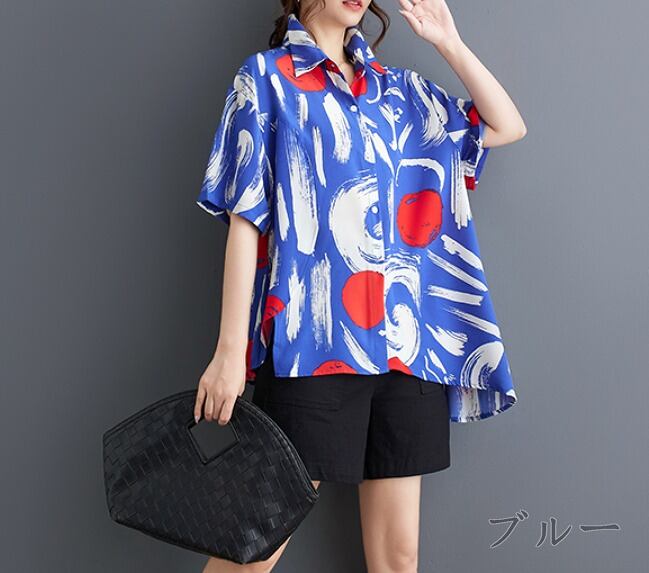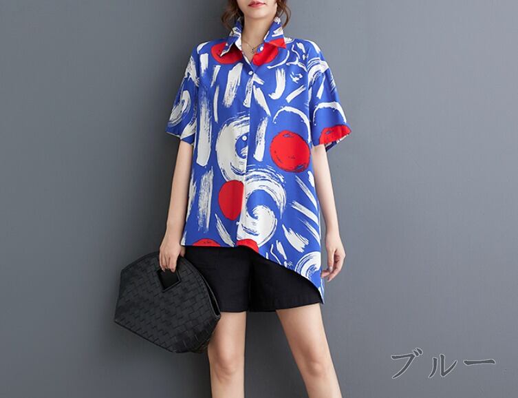 半袖シャツ プリント 切り替え バイカラー 体型カバー 着痩せ シンプル
