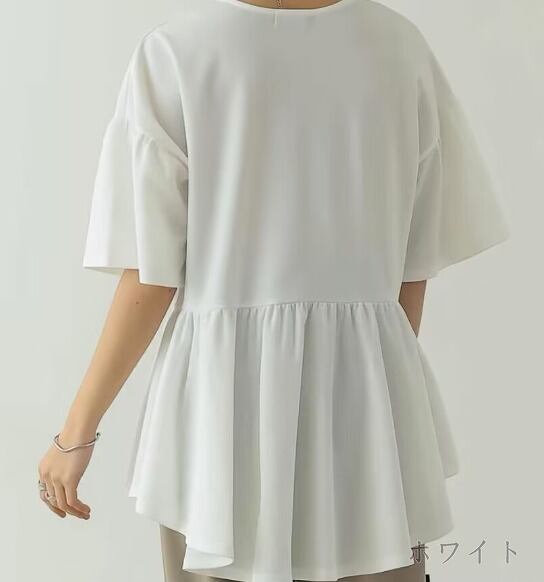 全2色 半袖シャツ アシンメトリー フリル 切り替え 体型カバー 着痩せ シンプル