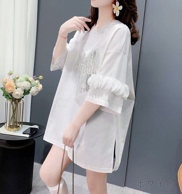 全2色 半袖Tシャツ 切り替え 体型カバー 着痩せ 【大きいサイズあり】 sweet系