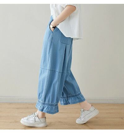 デニム レディース パンツ ボトムス 春夏 デニムパンツ パンツ 大人可愛い きれいめ 大きいサイズ ワイド デニムテーパードパンツ カーゴパンツ ロング ボトムス ワイドデニム ロールアップ ノアー