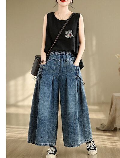 デニムパンツ レディース 大きいサイズ ワイドパンツ パンツ 春夏 かわいい 女の子 可愛い きれいめ ガウチョパンツ スカーチョ バギーパンツ テーパードパンツ ウエストゴム ロング ボトムス ノア
